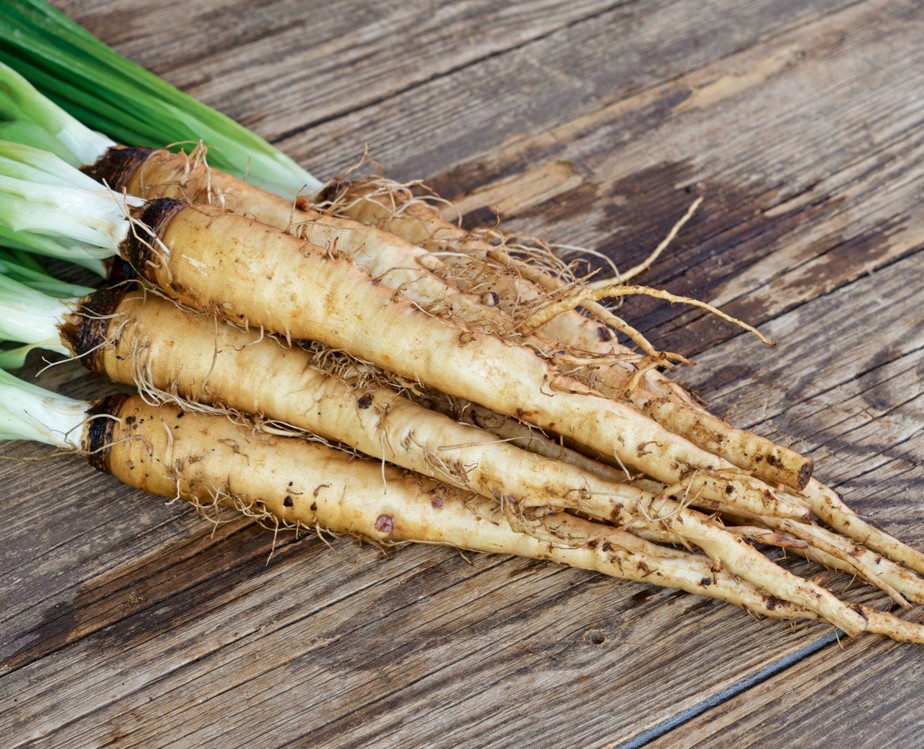 Vaaleat, kellertävät juuret 20-25 cm pitkiä. Erittäin kaunis ja koristteelinen kukinta toisena vuonna.