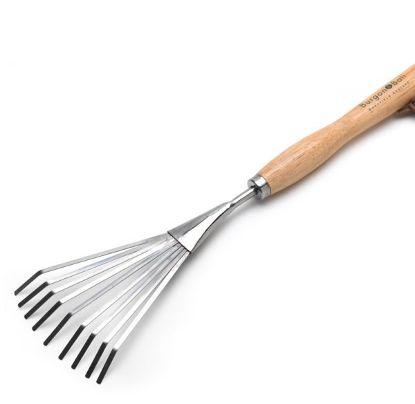 Käsiharava, täydellinen väline poistamaan roskat erilaisilta pinnoilta. Pituus 52 cm, josta puinen kahva 31 cm, lapaosan leveys 10 cm.