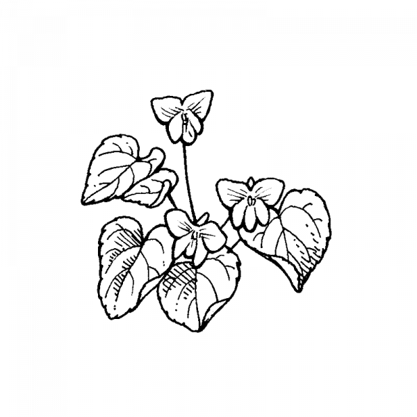 Tumman lilansiniset, tuoksuvat kukat. Lehdet sydämen muotoiset. korkeus noin 2o cm.