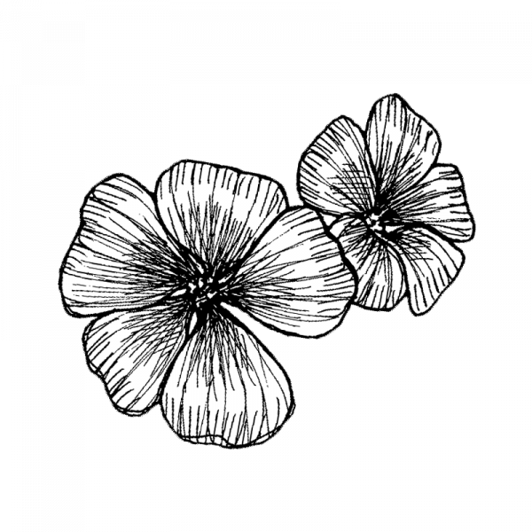 Sekoitus kukista, joiden suonikkaat terälehdet ovat valkoiset, tumman tai vaalean ruusunpunaiset. Nielu on tumma.