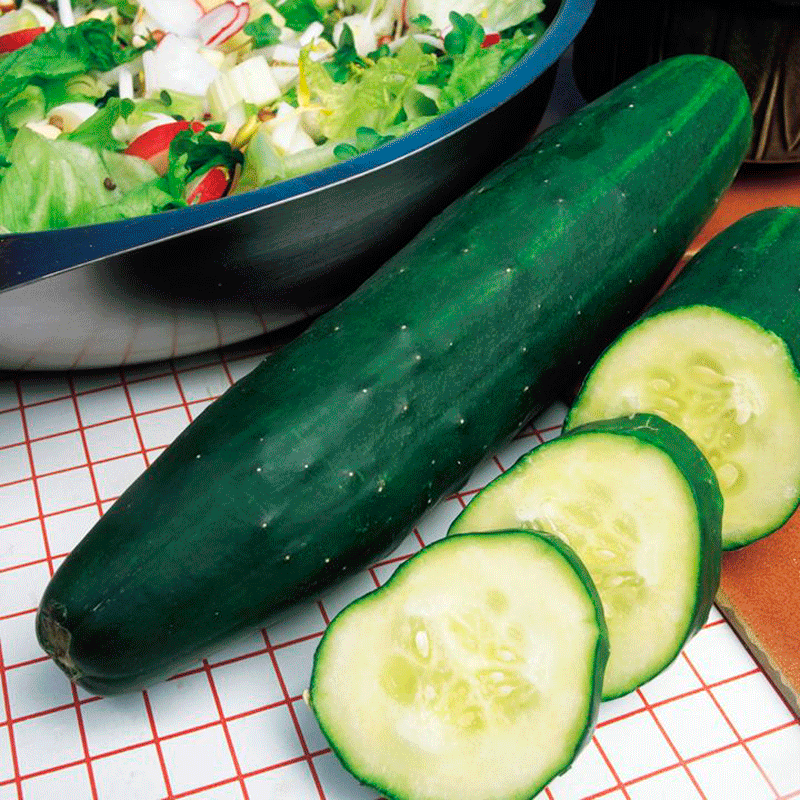 Hedelmät tasakokoisia, karvasaineettomia ja 20-25 cm pitkiä. Pitkä satoaika. Hyvin taudinkestävä!