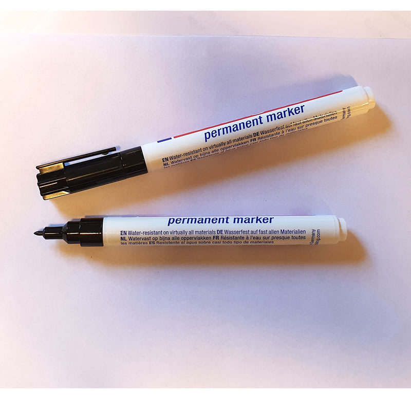 Edding 400  -tussi, ammattilaisten suosima, teksti kestää merkkitikuissa sateet ja paisteet! Tarttuu lähes kaikkiin pintoihin, kuivuu nopeasti, ei tuoksu vahvasti.