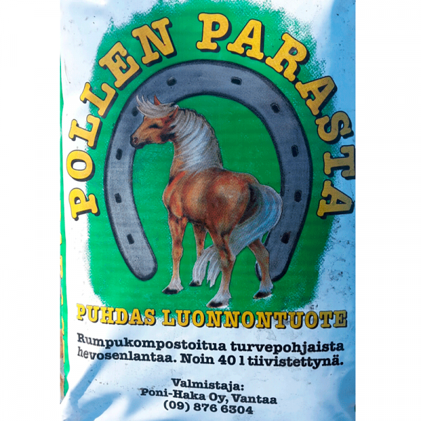 40 litran kompakti säkki tunnettua laadukasta kompostoitua hevosenlantaa.