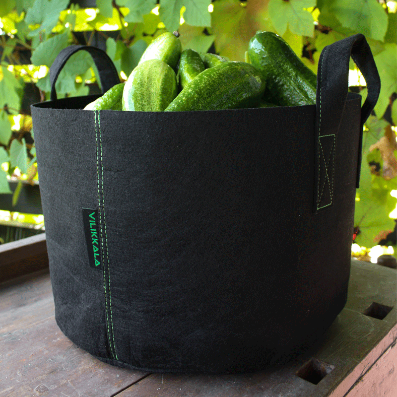 Vilikkala-kotisäkit on valmistettu 100 % kierrätetystä polyesterimuovista (PET), esimerkiksi juomapulloista. Tuote on Bisfenoli-A vapaa (BPA), hengittävä, UV-resistentti, pölytön ja kestävä.