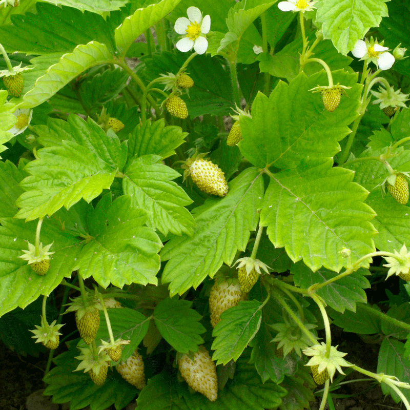 Marjat kermanvalkoisia, pitkänomaisia. Erittäin makeita. Korkeus n. 20 cm. Sopii erityisesti niille, jotka ovat allergisia mansikan punaiselle väriaineelle. Linnut jättävät rauhaan!