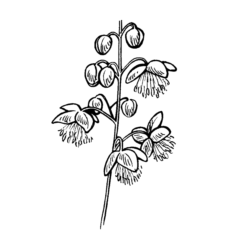 Kaksivuotinen. Kiinasta kotoisin oleva leinikkikasvi. Kukkii pitkään heinä-elokuussa. Kauniin ilmavat, lilat kukkatertut yltävät yli metrin korkeuteen. Kukissa koristeelliset, pitkät heteet. Lehdet sirot ja pienilehdykkäiset, muistuttavat akileijan lehtiä. Laji kasvaa noin 40 cm leveäksi. Myrkyllinen, ihokosketus saattaa ärsyttää. Mehiläiset pitävät! 1 g = n. 400 siementä.
