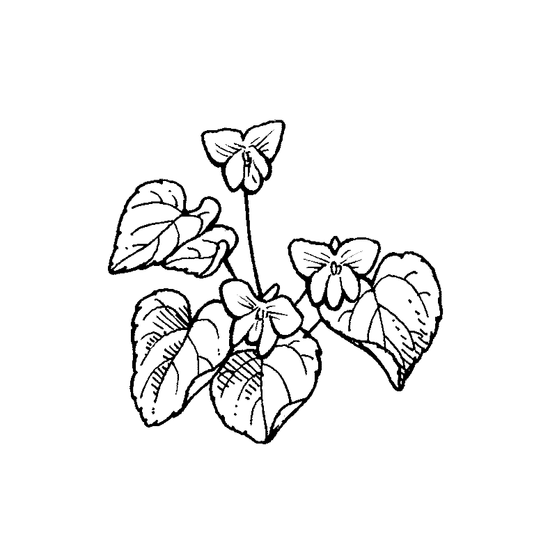Tumman lilansiniset, tuoksuvat kukat. Lehdet sydämen muotoiset. korkeus noin 2o cm.