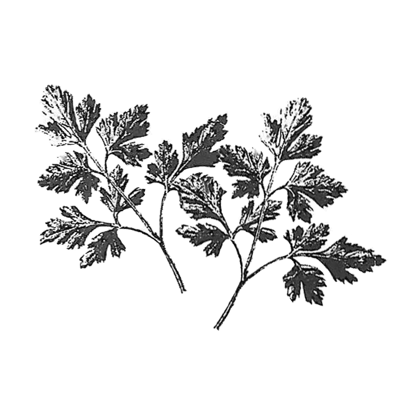 Juuripersilja, persiljamaiset lehdet, juuri on kuin pieni palsternakka.